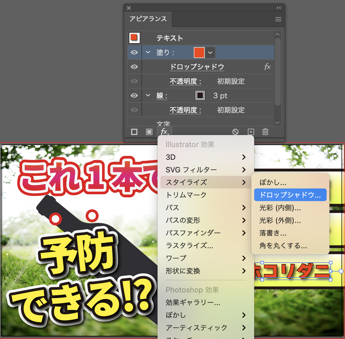 ドロップシャドウを使って文字を強調しよう【Illustrator】